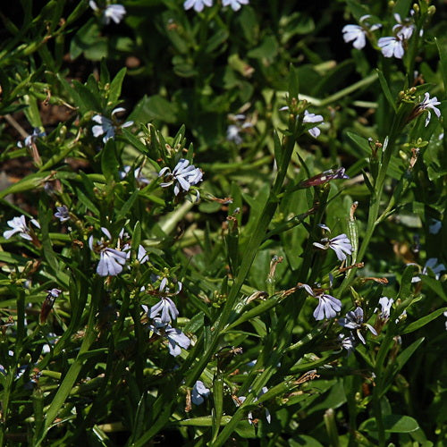 Lobelia anceps is a charming, spreading perennial that thrives in wetland areas, making it ideal for pond edges and water gardens. Its delicate blue to purple flowers attract pollinators such as bees and butterflies, adding life and color to any aquatic or boggy setting. With its trailing habit, it works well as a ground cover and helps to stabilize soil in wet conditions.